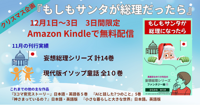 ひらかわゆうきによる「妄想総理」シリーズファンタジー編『もしもサンタが総理だったら』を、12月1日(金)から3日(日)までの3日間限定で無料配信いたします。