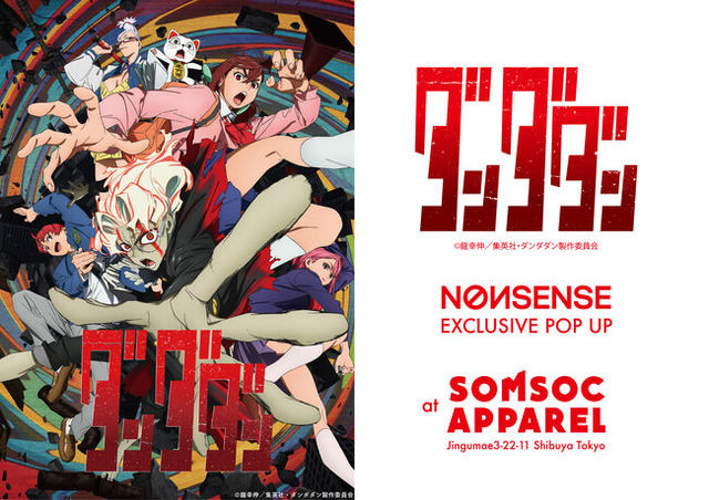 研美株式会社(本社:東京都渋谷区 代表取締役:厳研)が運営するクリエイターズユニット兼ギャラリーの「SOMSOC GALLERY(ソムソクギャラリー)」は、日本発の次世代アパレルブランド NØИSENSEと大人気TVアニメ 『ダンダダン』 によるコラボレーションアパレルアイテムの販売を12月8日(月)より開始します。