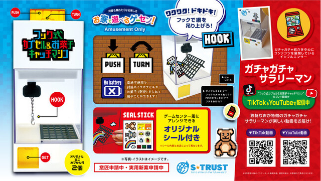 株式会社エス・トラスト(本社:大阪市西区、代表取締役:井田 金吾、以下 エス・トラスト)は、ゲームセンターでよく見かける “フック式のクレーンゲーム” を再現した「フック式カプセル&お菓子キャッチマシン」をアミューズメント専用景品(プライズ)のミニチュアギミック玩具として2025年12月4週よりアミューズメント施設※ で順次展開いたします。
