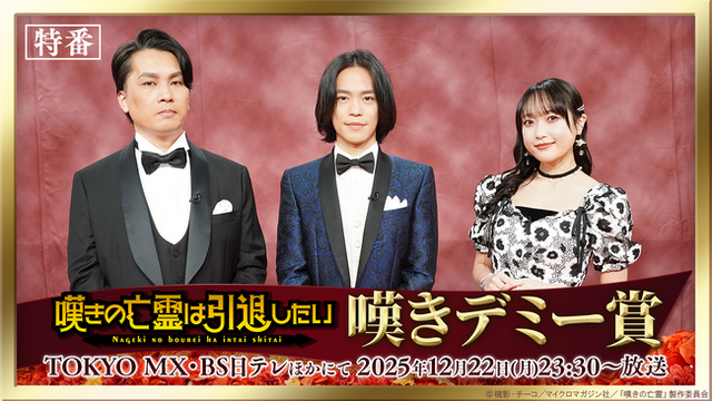 TVアニメ『嘆きの亡霊は引退したい』第2クールの特別番組として、小野賢章さん、久保田未夢さん、たかたまさひろ監督出演の特別番組「嘆きデミー賞」の詳細を公開したことをお知らせします。