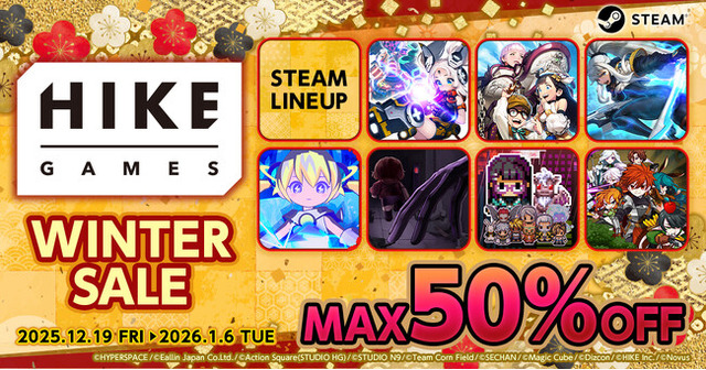 株式会社HIKE(本社:東京都新宿区、代表:三上 政高)のゲームブランド「HIKE GAMES」は本日12月19日(金)~2026年1月6日(火)の期間限定で、Steam(R)にて発売中の7タイトルを対象にしたWINTERセールを実施いたします。今回のセールでは、HIKE GAMESから発売中の『CONERU -DIMENSION GIRL-』、『PROJECT TACHYON』、『ARIA CHRONICLE』、『METALLIC CHILD』、『Last Light』、『PARTY RUSH!!』、『The Lord of the Parties』のゲーム本編や一部DLCが対象となります。50%オフとなるタイトルもございますので、この機会をお見逃しなく。