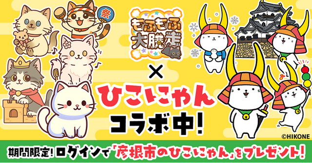 株式会社POCKET RD(本社:東京都港区、代表取締役:籾倉宏哉、以下、「POCKET RD」)のかわいいネコが大活躍するLINEミニアプリ版パズルゲーム「もふもふ大脱走」は滋賀県彦根市のキャラクター「ひこにゃん」とコラボイベントを開催します!