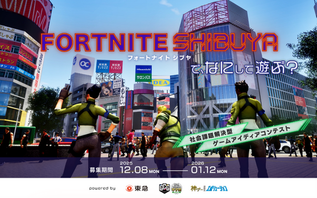 株式会社ゲームクリエイターズギルドおよび東急株式会社(以下、東急)は、社会課題解決型ゲームアイデアコンテスト『FORTNITE SHIBUYAで、なにして遊ぶ?』(以下、本コンテスト)の開催を発表し、12月8日からアイデアの募集を開始しています。