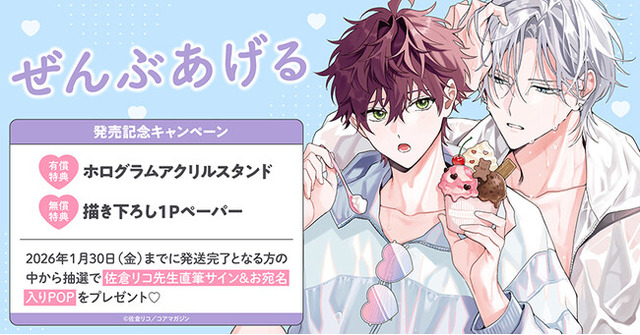 ホーリンラブブックスでは佐倉リコ先生最新コミックス『ぜんぶあげる』発売を記念して、豪華キャンペーンを実施いたします!