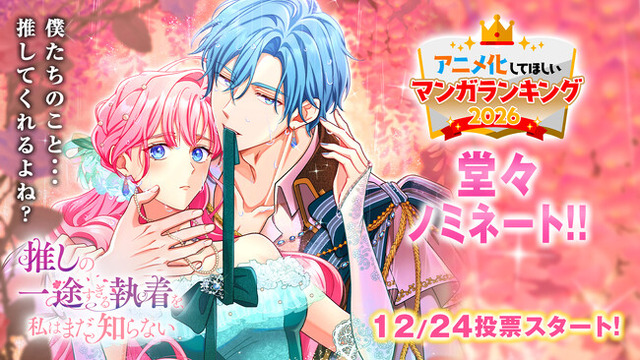 株式会社サイバーエージェント(本社:東京都渋谷区、代表取締役社長:山内隆裕、東証プライム市場:証券コード4751)が運営する縦読み漫画のコンテンツスタジオ「STUDIO ZOON(スタジオズーン)」は、オリジナル作品『推しの一途すぎる執着を、私はまだ知らない』(通称『推しまだ』)が、AnimeJapanが主催する「アニメ化してほしいマンガランキング2026」にノミネートされたことをお知らせいたします。