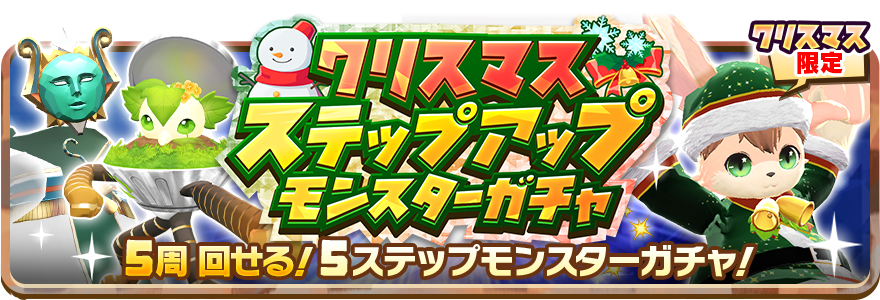 期間中開催の「クリスマスステップアップ モンスターガチャ」では、新ノーブルモンスター「ハムクロース」が登場するほか、オシリス・ステルナーのいずれか1体を獲得可能な「クリスマス円盤石」を最大で5つ獲得可能です。また、STEPごとにもらえる「ハムクロースメダル」を25枚でハムクロースが必ず獲得できる「ハムクロース円盤石」と交換できます。【開催期間】開催中~2025年12月31日(水)14:59