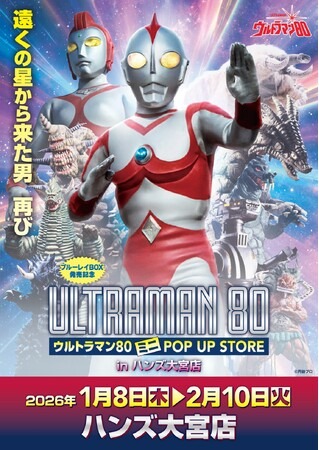 マンガ、アニメ、特撮などを始めとするサブカルチャーをテーマとした企画展を開催・運営している株式会社CRAZY BUMPは2026年1月8日(木)から2月10日(火)の期間で、【ウルトラマン80 ミニ POP UP STORE in 大宮】を開催致します。