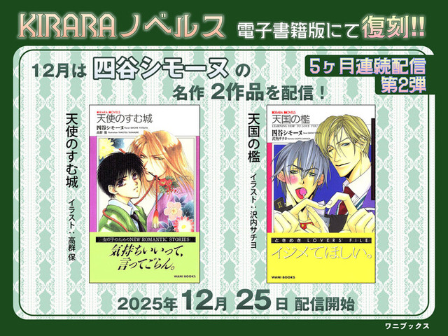 株式会社ワニブックス(東京都渋谷区、代表取締役:高橋明男)は、2025年12月25日より四谷シモーヌの小説『天使のすむ城』と『天国の檻』の電子書籍版を配信します。