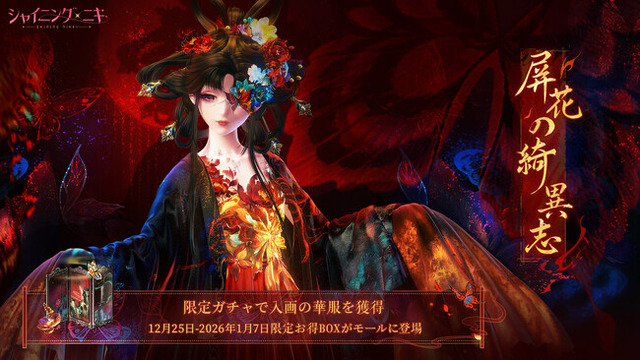 Papergames(ニキ株式会社)が開発・運営し、全世界で累計1億DLを突破した大人気着せ替えゲーム『シャイニングニキ』において、2025年12月25日(木)メンテナンス後より新規イベント「屏花の綺異志」を開催いたします。イベント期間中に登場する、新規コーデや豪華なイベント報酬などにぜひご注目ください!