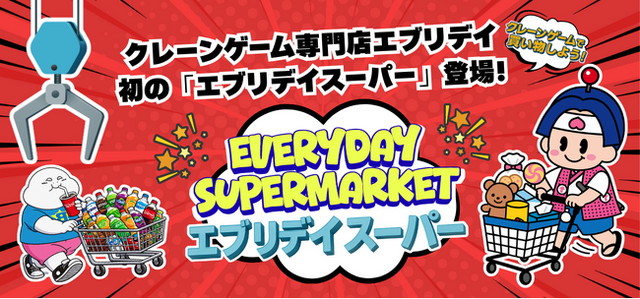 「笑顔創造」を企業理念とする株式会社東洋(所在地:埼玉県桶川市)は、2025年12月25日(木)、当社が運営するクレーンゲームテーマパーク「エブリデイ多摩ノ国店」にて、店内改装により誕生した新コーナー「エブリデイスーパー(マーケット)」をオープンいたします。本コーナーは、クレーンゲーム105台・210ブース・約180種類の食品景品を展開する、エブリデイ史上最大級の“食品特化型クレーンゲームゾーン”です。