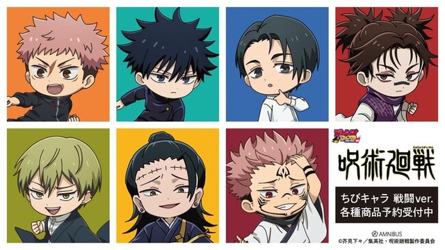 虎杖 悠仁、伏黒 恵、乙骨 憂太、脹相、禪院 直哉、夏油 傑、宿儺の描き起こしちびキャライラストをメインにデザインしました。