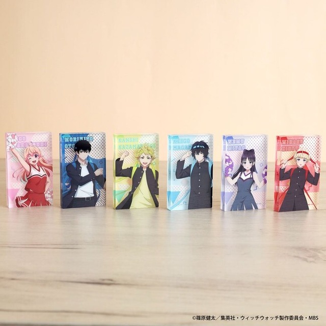 TVアニメ『ウィッチウォッチ』のニコやモリヒトたちが応援団とチアリーダー衣装を着た描き起こしミニキャラを使用したアイテムです。