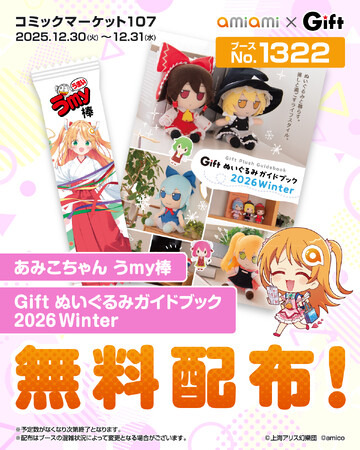 『コミックマーケット107』会場の「あみあみ×Gift」ブースにて、「あみこちゃん うmy棒」「Gift ぬいぐるみガイドブック2026 Winter」を無料配布いたします。