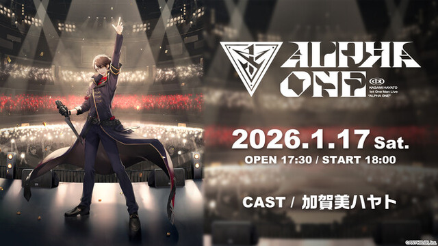 株式会社ドワンゴは、ライブ配信サービス「ニコニコ生放送」で、VTuber/バーチャルライバーグループ「にじさんじ」所属のライバー・加賀美ハヤトが実施する初ワンマンライブ「加賀美ハヤト 1st One Man Live “ALPHA ONE”」本編を2026年1月17日(土)18時より現地会場のTOYOTA ARENA TOKYO(東京都江東区)から独占生配信します。さらに、ライブを盛り上げる企画番組として「直前放送」と「最速感想放送」を配信します。