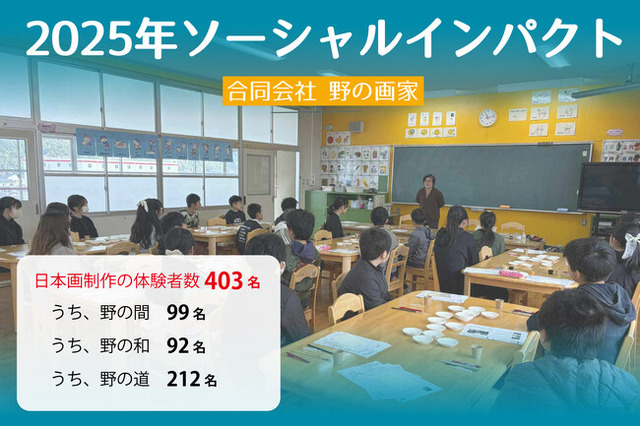 日本画材と日本画文化の継承を目的に日本画制作体験を提供する、合同会社野の画家(福岡県福岡市、代表:金石美江)は、2025年のソーシャルインパクトを公表いたします。