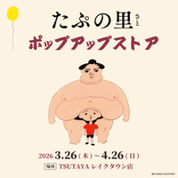 ハマる人続出!?神出鬼没、謎の力士が「たぷっ」とおなかをのせてくる人気の絵本「たぷの里」。ファン待望のグッズが「TSUTAYAレイクタウン」ポップアップストアにて2026年3月26日より発売決定!