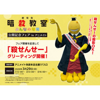 「殺せんせー」のグリーティングが、3月29日アニメイト池袋本店にて開催! 全国のアニメイトでは、特典がもらえる「『劇場版「暗殺教室」みんなの時間』公開記念フェア in アニメイト」を開催!!