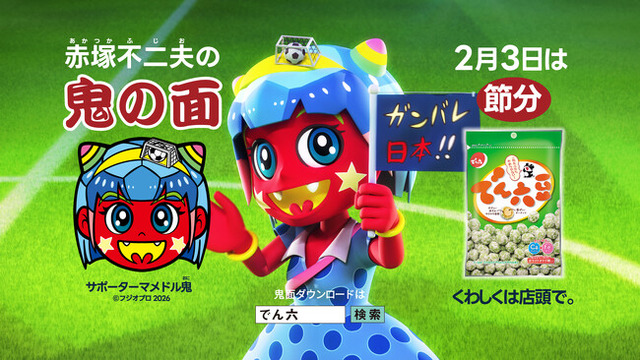 株式会社でん六(本社:山形県山形市 代表取締役社長:鈴木隆一)は、2026年節分の新TVCM「サポーターマメドル鬼♪熱狂スタジアムライブ!」篇を2026年1月4日(日)から放送開始いたします。