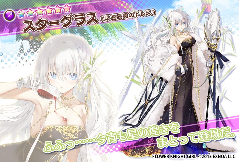 イベントに登場する「スターグラス(幸運高貴のドレス)」「シロタエギク(あなたを支える水着)」