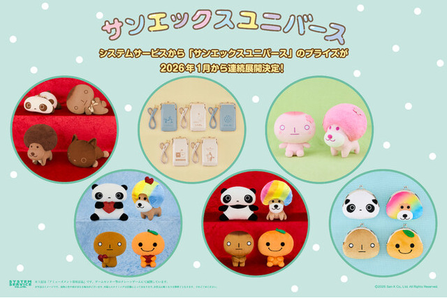 システムサービス株式会社(本社:東京都豊島区、代表取締役社長:田村宗弘)は、「サンエックスユニバース」のプライズ商品を2026年1月より順次アミューズメント施設にて展開いたします。