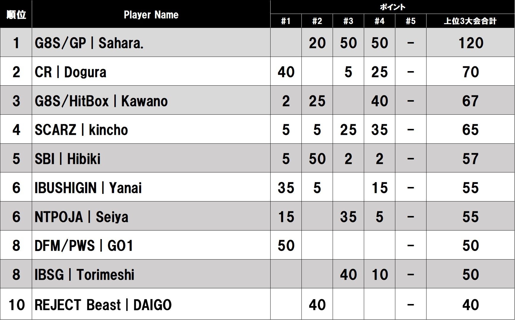 獲得合計ポイント順位※第4回大会終了時点[画像5: https://prcdn.freetls.fastly.net/release_image/13450/5547/13450-5547-f9f1263a9f540c5172c5e05bc60791d0-1734x1080.jpg?width=536&quality=85%2C75&format=jpeg&auto=webp&fit=bounds&bg-color=fff ]