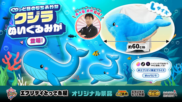 今回登場する新景品は、思わず目を引くビッグサイズが魅力の「クジラぬいぐるみ」です。