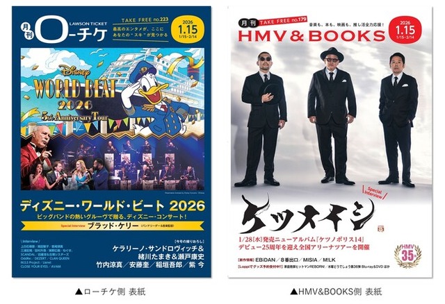 株式会社ローソンエンタテインメント(本社:東京都品川区、代表取締役社長:野口 透)が運営する「ローソンチケット」および「HMV&BOOKS」は、フリーペーパー『月刊ローチケ/月刊HMV&BOOKS』2026.1.15号を、1月15日(木)より、全国のローソンやHMVなどの店頭にて順次配布いたします。