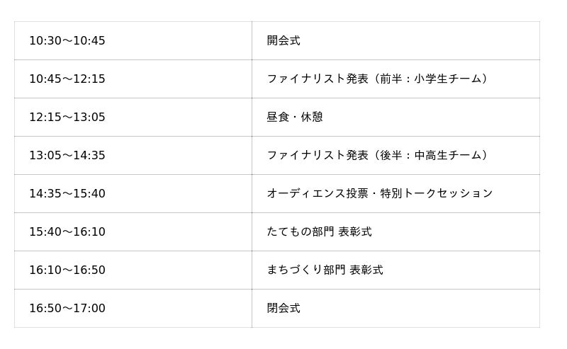16:10からの「まちづくり部門表彰式・閉会式」にご参加いただくと、