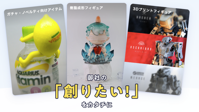 事業内容:3Dデータ作成、3Dプリントを活用した試作、フィギュア量産支援
