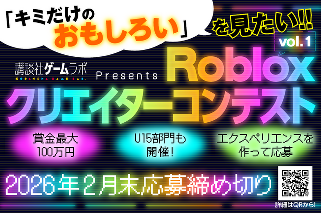 株式会社講談社(本社:東京都文京区、代表取締役社長:野間省伸)クリエイターズラボの一部門である「講談社ゲームラボ」は、株式会社GeekOut および株式会社DEVLOXの協力のもと、世界的なゲーミングプラットフォーム「Roblox」で活躍するクリエイターの発掘・支援を目的とした「Robloxクリエイターコンテスト」を開催いたします。2026年1月19日より募集開始です。