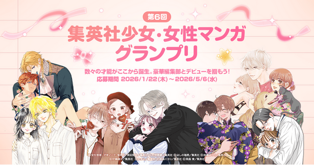 これまでも数々の才能を発掘したマンガ賞「集英社少女・女性マンガグランプリ」の第6回の開催となる今回。ぜひとも奮ってご参加ください。