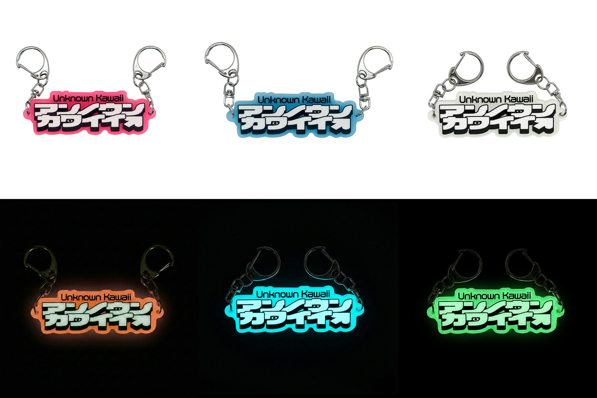 - アンノウン・カワイイ 蓄光キーホルダー(ピンク・ホワイト・ブルー3種)各1,980円