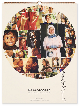 世界各国で出会った人々の「まなざし」にフォーカスし、彼らが何に希望を見い出し、どのような日常を生きているのか、そのまなざしの先に広がる暮らしや日常を感じていただける仕上がりとなっています。 また、彼らの暮らしを覗き見るような感覚で楽しんでいただきたいという想いから、デザインは印象的な円形のレイアウトを採用しました。