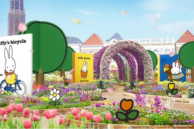 「憧れの異世界。」をブランドに掲げる長崎県のテーマパークリゾート「ハウステンボス」で開催する、日本最大(※1)!ミッフィーづくしのイベント『ミッフィーセレブレーション』【2026年2月27日(金)から6月28日(日)まで】に新登場の「ミッフィーのフラワーブルームガーデン」について、詳細を公開いたします。