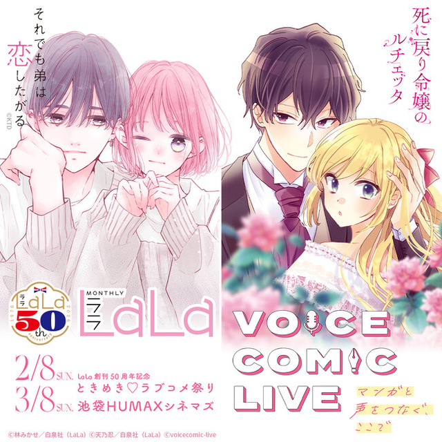 株式会社ヒューマックスエンタテインメント(東京都新宿区、代表取締役社長:秋元巳智雄)が、池袋HUMAXシネマズにて開催する「ボイスコミックライブ」の飲食メニューが決定しました。本公演は白泉社のLaLa創刊50周年記念公演として『ときめき(ハート)ラブコメ祭り』と題して開催します。「ボイスコミックライブ」は、スクリーンに映るマンガのキャラクターに、声優がライブで声を吹き込む舞台公演です。公演終盤の打ち上げシーンではドリンクを使用した乾杯タイムも予定されています。お味はもちろん、見た目も楽しめるドリンクを片手に公演をご覧ください。