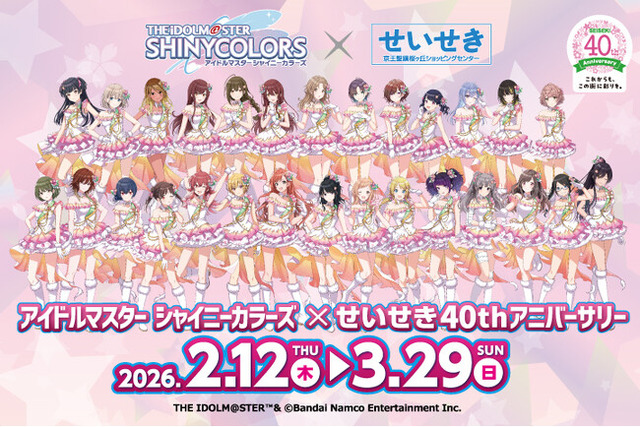 株式会社京王SCクリエイション(本社:東京都多摩市、代表取締役社長:小堺 健司)は、2026年3月28日(土)に京王聖蹟桜ヶ丘ショッピングセンターが開業40周年を迎えるにあたり、「アイドルマスター シャイニーカラーズ(以下、シャニマス)」とのコラボレーション第3弾として、「アイドルマスター シャイニーカラーズ×せいせき40thアニバーサリー(以下、当企画)」を2月12日(木)~3月29日(日)まで実施します。