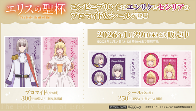 全国のコンビニで利用可能なプリントサービスとして提供中のTVアニメ『エリスの聖杯』コンビニプリントで展開中のブロマイド&シールにエンリケとセシリアが追加されました。