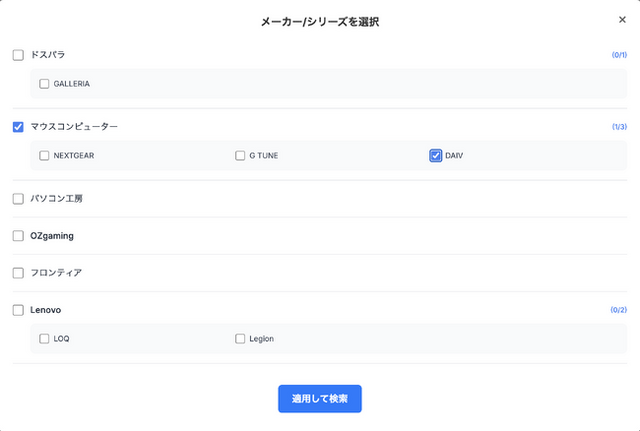 1. DAIVシリーズのPCを検索・比較対象に追加