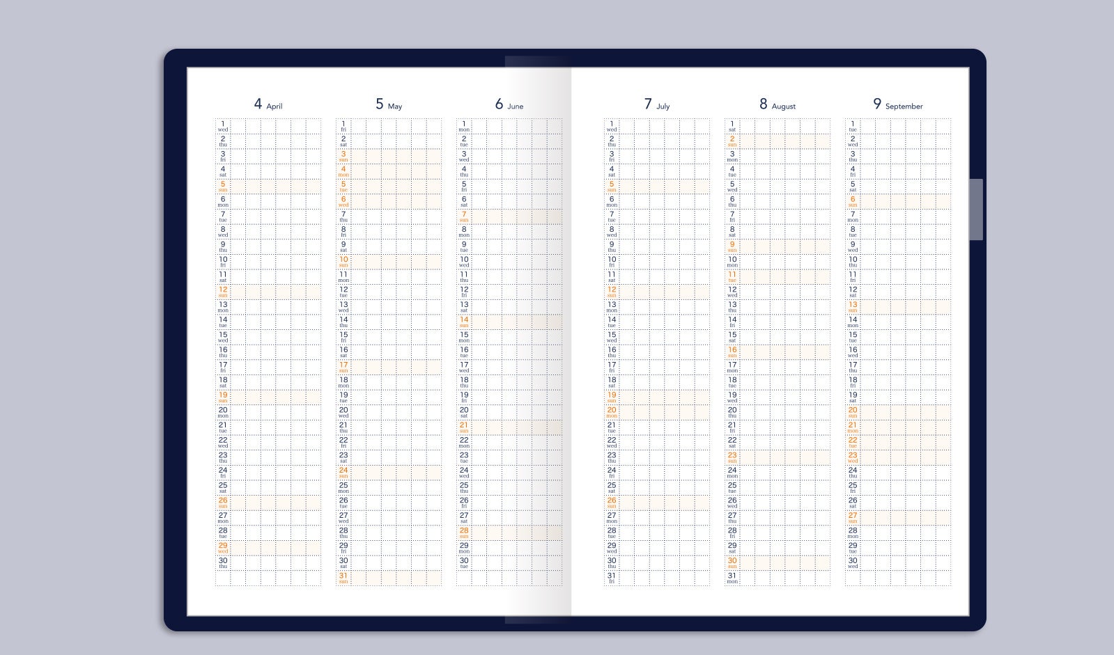 1年の前半(4月~8月)、後半(9月~3月)に分かれた2冊組です。これにより1冊が軽量化、しっかりと予定を書きたいけれど、荷物はコンパクトにしたいと考える層にヒットしました。