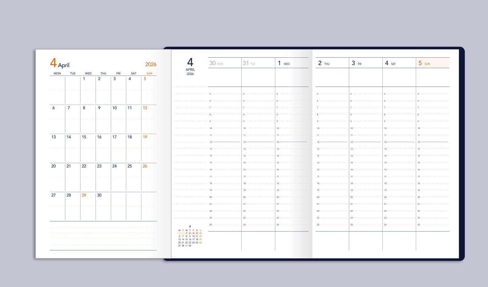 セパレートダイアリー サイズはA5、B6の2展開、それぞれ月間/週間と、月間/日のバージョンを用意
