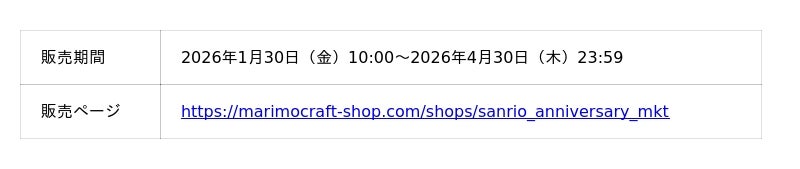 株式会社マリモクラフト(本社:東京都江東区)は株式会社サンリオの人気キャラクターで昨年、マイメロディの50周年、クロミの20周年、リトルツインスターズの50周年、またサンリオの機関紙「月刊いちご新聞」の創刊50周年を迎えた特別な一年が重なるミラクルイヤーをお祝いする大型ショッピングイベント『Sanrio characters Special Anniversary Market』を2025年4月29日(火・祝)~2026年1月5日(月)まで、全国12箇所の百貨店にて開催いたしました。