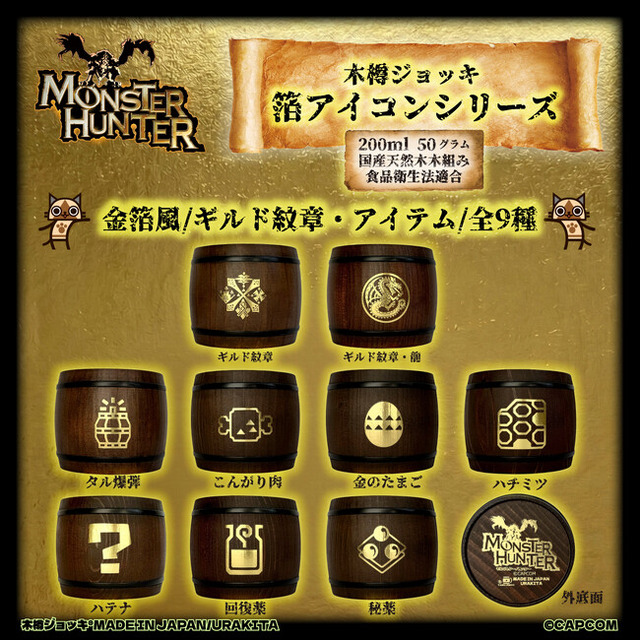 株式会社愛鷹製作所・工房名称:URAKITA工房(本社:東京都世田谷区、代表取締役:上石大介)は、ゲーム「モンスターハンター」シリーズ(株式会社カプコン)作中に登場する《ギルド紋章・アイテムアイコン》 を箔押し加工した木樽ジョッキ、「箔アイコンシリーズ」を直販サイト「URAKITA工房」にて、2026年1月30日(金)12時より発売します。