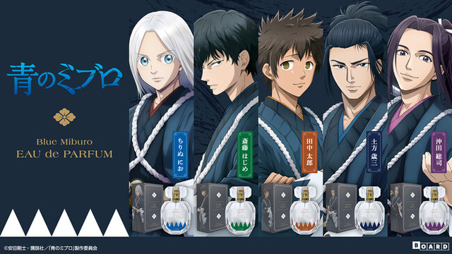 合同会社BOARD(神奈川県藤沢市)は、TVアニメ『青のミブロ』に登場するキャラクターたちをイメージした香水を発売します。