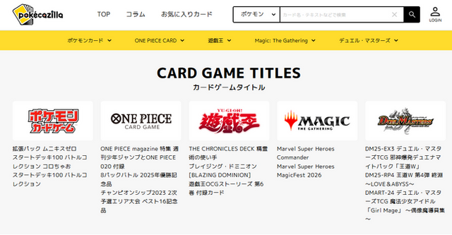 トレカの価格比較サービス「ポケカジラ」を展開する株式会社カブキ(本社:神奈川県藤沢市、代表取締役:片川創太)は、2026年1月27日、取り扱いトレカタイトルを5つに拡大いたしました。これまでの「ポケモンカードゲーム」に加え、新たに「マジック:ザ・ギャザリング」「ONE PIECEカードゲーム」「遊戯王OCG デュエルモンスターズ」「デュエル・マスターズ」に対応。