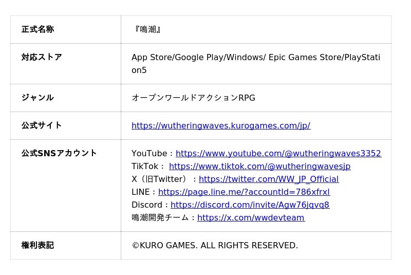 『鳴潮』は、自由度の高い戦闘と多種多彩なコンテンツが楽しめるオープンワールドアクションRPGです。プレイヤーは長い眠りから目覚めた「漂泊者」となって自分の記憶と物語を探す旅に就き、十人十色の共鳴者の仲間たちと共に世界を変える旅路へと踏み出します。