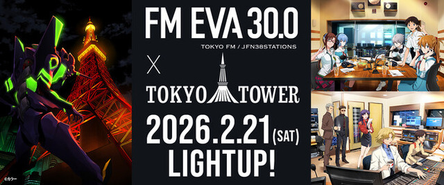 TOKYO FMをはじめとするJFN38局で放送中のラジオ番組「FM EVA 30.0」と東京タワーがコラボレーション!2026年2月21日(土)~2月23日(月・祝)に、『エヴァンゲリオン』シリーズ30周年を記念して開催されるフェスイベント、「EVANGELION:30+; 30th ANNIVERSARY OF EVANGELION」の開催日に合わせ、2月21日(土)の夜、1日限定で東京タワーが紫・緑を中心としたエヴァンゲリオン初号機カラーにライトアップされます。