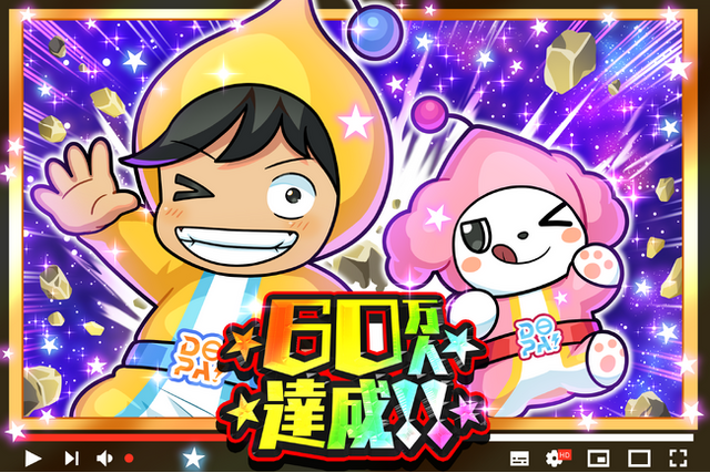 [画像1: https://prcdn.freetls.fastly.net/release_image/168482/24/168482-24-a0f42d86fc4f705c84541d60edd44d02-3000x2000.png?width=536&quality=85%2C75&format=jpeg&auto=webp&fit=bounds&bg-color=fff ]DOPA!公式YouTubeチャンネルのチャンネル登録者数が60万人を突破いたしました。これを記念して、記念動画を公開いたします。