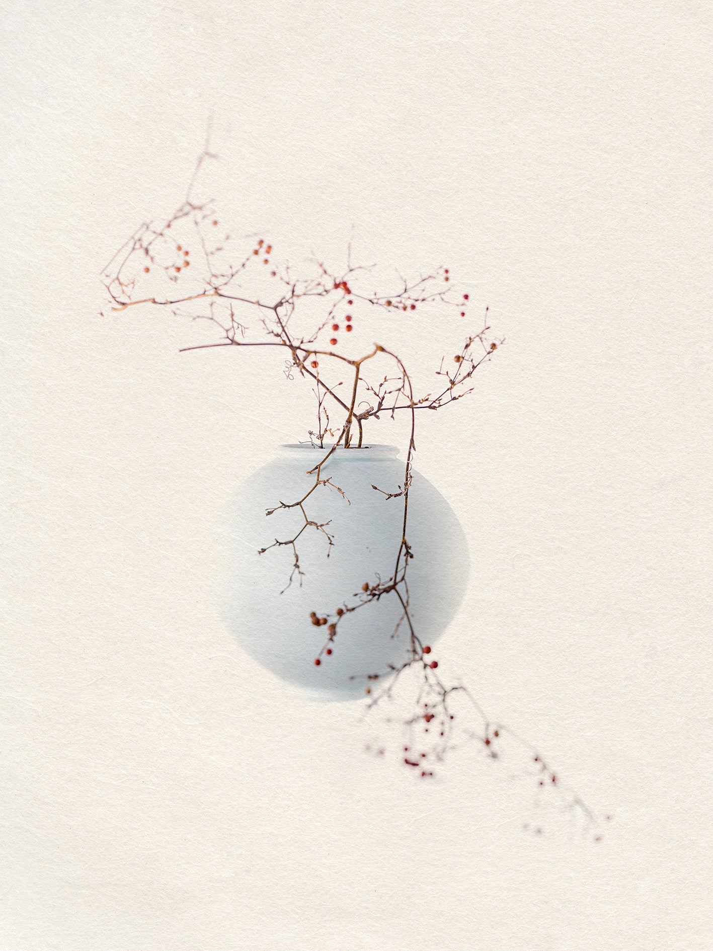 風景写真では「時間の移ろい」を、静物写真では「存在そのものの在り方」を捉えることを意識してきた。私が一貫して向き合っているのは、被写体が本来持つ真正性である。