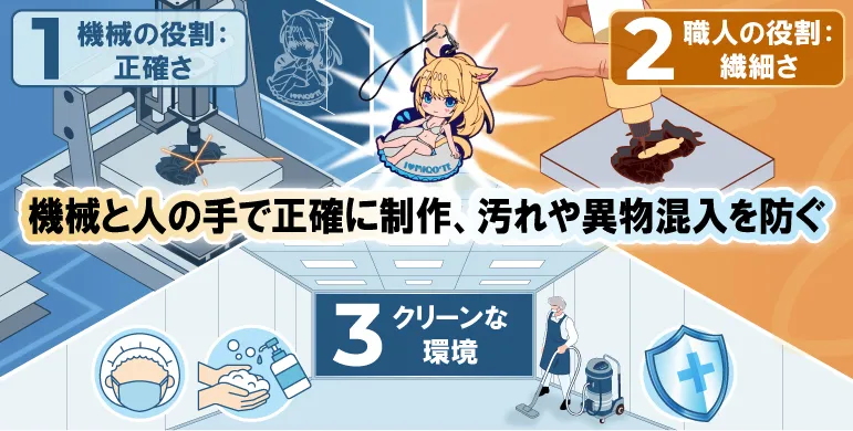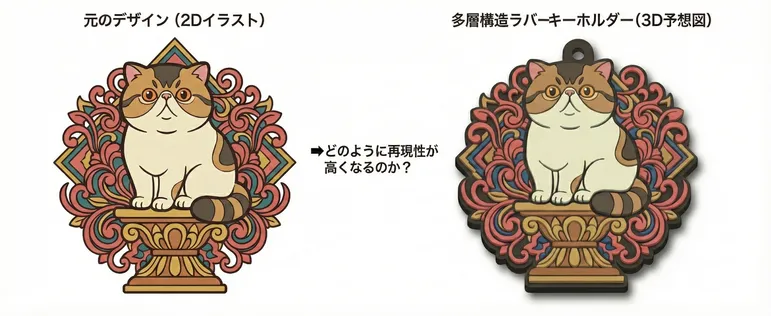 昨今の「推し活」ブームや、90年代・00年代カルチャーのリバイバル(平成レトロ)の影響を受け、ぷっくりとした立体感と鮮やかな色使いが特徴のラバー製品は、アニメ・キャラクター業界のみならず、ファッションブランド、アーティストグッズ、スポーツチームのファンクラブ特典など、幅広い分野で再注目されています。耐久性に優れたPVC(ポリ塩化ビニル)素材が生み出す独特の質感は、アクリルスタンドや缶バッジにはない「所有する喜び」と「高級感」を利用者に提供します。しかし、その需要の高まりとは裏腹に、製作サイドには長年の課題がありました。それは「製作難易度の高さ」です。 画像をプリントするだけのグッズとは異なり、ラバー製品は「金型」を作成し、色ごとに液状の樹脂を流し込んで焼き固めるという工程を経ます。そのため、「線画の太さはどれくらい必要なのか」「隣り合う色はどのように区切ればいいのか」「裏面の仕様はどうなるのか」といった技術的な疑問が尽きず、インターネット上で情報を探しても断片的な知識しか得られないという現状がありました。
