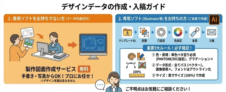 ※当店では、自分で入稿データを作成するのは難しい方向けのデータ作成代行サービスもご提供しております
